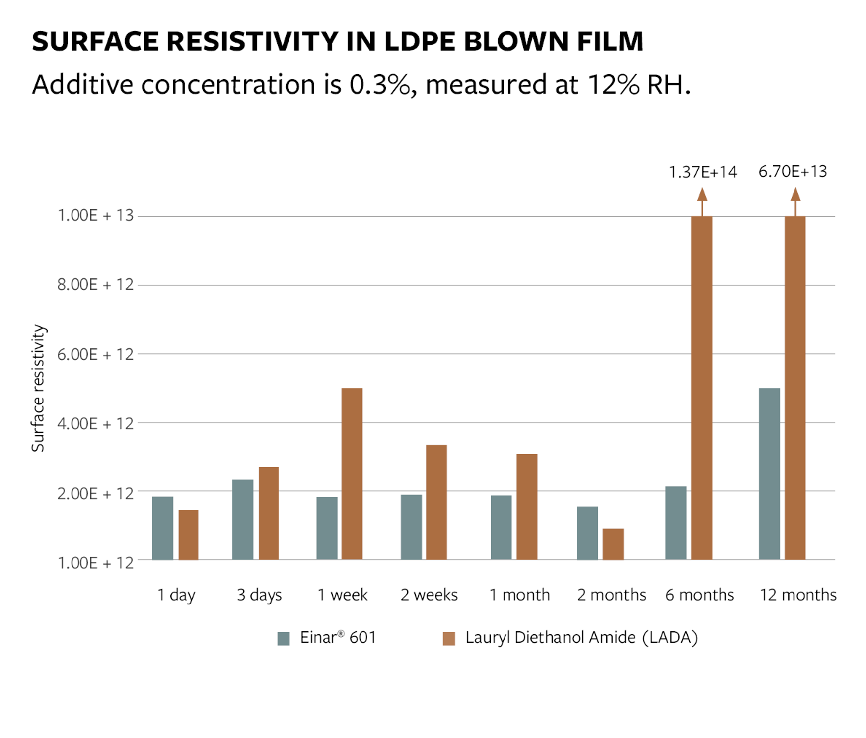 Se sabe que los antiestáticos convencionales, tales como aminas etoxiladas y dietanolamida, causan agrietamiento por tensión y, en el caso de amidas, conducen a una migración excesiva que da como resultado el desarrollo de un residuo aceitoso en la película del empaque.