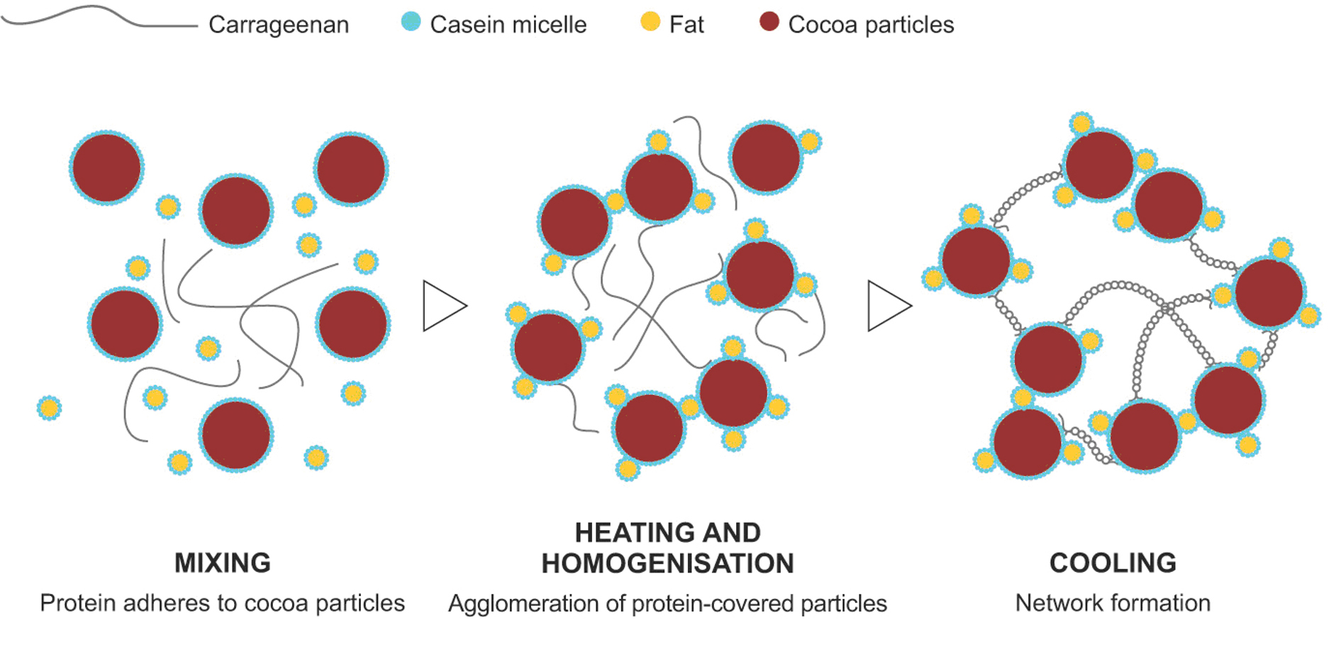 “巧克力牛奶可以通过不同方式生产。例如,稳定剂体系通常是卡拉胶(Carrageenan)或微晶纤维素(Microcrystalline Cellulose,MCC)。”
